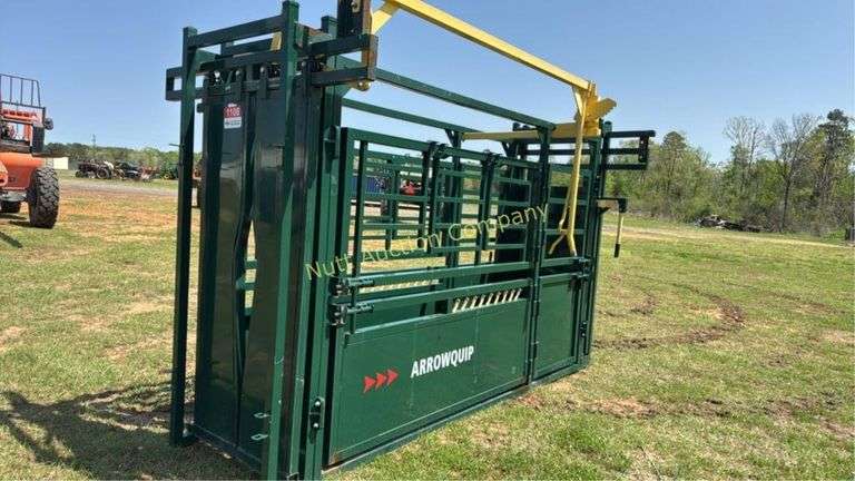 LOT 1108 - Arrowquip Cattle Squeeze Chute, manual head gate w/Palpate Gates & Bars, 33 1/2in wide, 10' long
